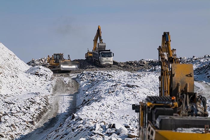 На участке разрабатывают две выемки общим объемом более 3 миллиона кубометров грунта. Рядом с действующим путем запрещено производить взрывные работы, поэтому скалу дробят гидромолотами. На крутых скальных массивах обустраивают полки шириной от 4 до 6 метров. У подножия насыпи строят кювет-траншеи для сбора воды.