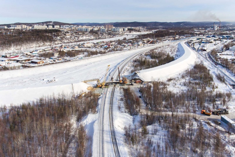 Реконструкция путепровода идёт в рамках строительства двухпутной вставки на перегоне Курьян – Тында. Мост проходит над действующей железной дорогой Тында – Бамовская, по которой поезда идут в сторону Транссиба.